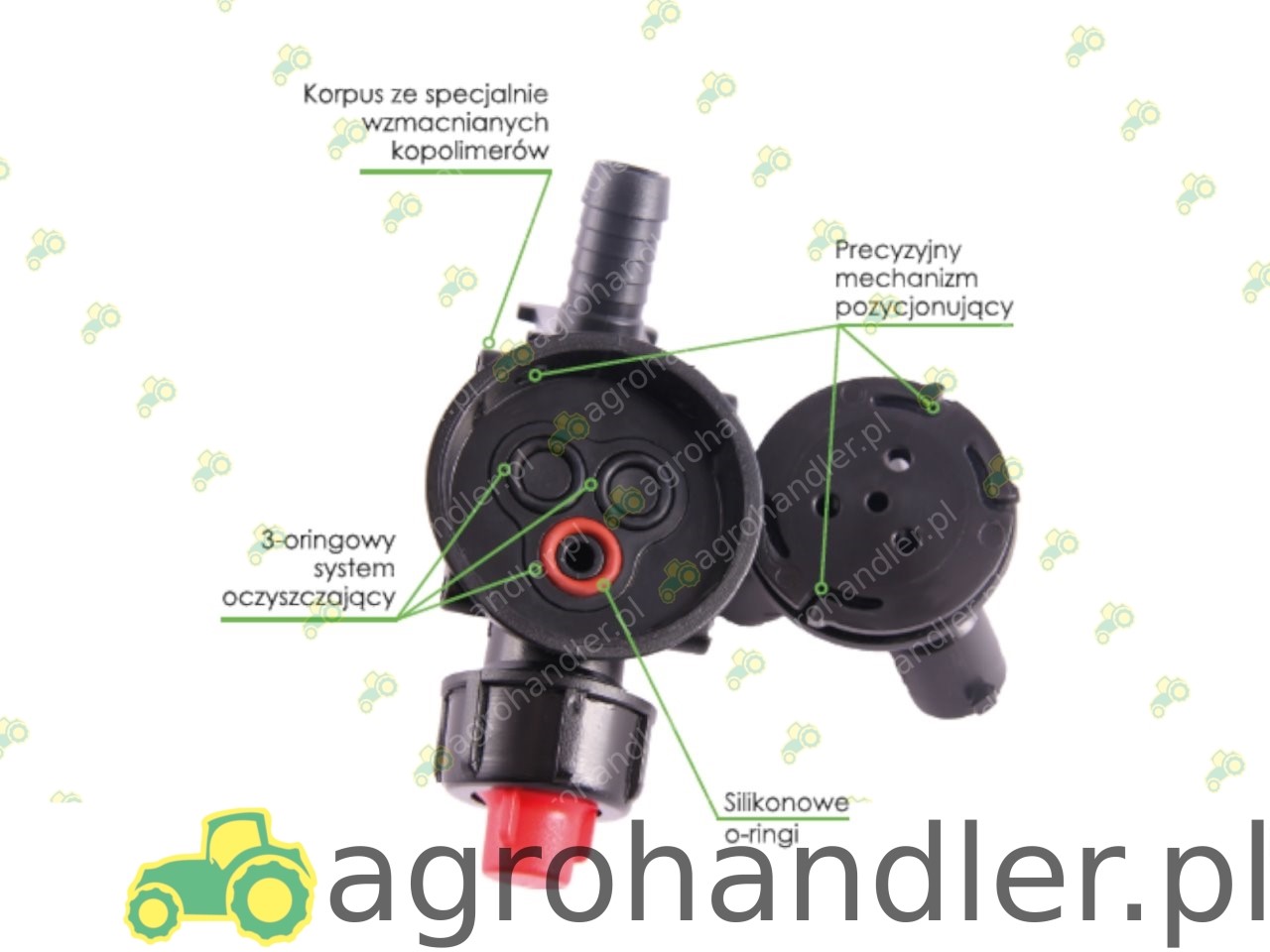 - 3-oringowy mechanizm czyszczący zapewnia długotrwałą, bezawaryjną pracę głowicy;