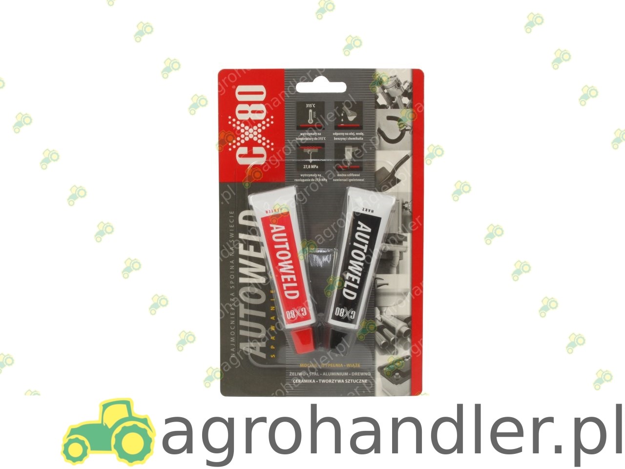 WŁAŚCIWOŚCI: tworzy wytrzymałą spoinę • przydaje się wszędzie, gdzie trzeba coś skleić, wypełnić • naprawia wszystkie twarde powierzchnie, takie jak: metale, stal, żelazo, aluminium, mosiądz, miedź, cynk, drewno, porcelana i plastik • skleja i naprawia uszkodzone rury, zbiorniki z paliwem, akumulatory, głowice cylindrów, bloki silników • może być nawiercany, szlifowany, frezowany, gwintowany i malowany • wytrzymuje temperatury do +315°C • trwałość w tubach – 25 lat.